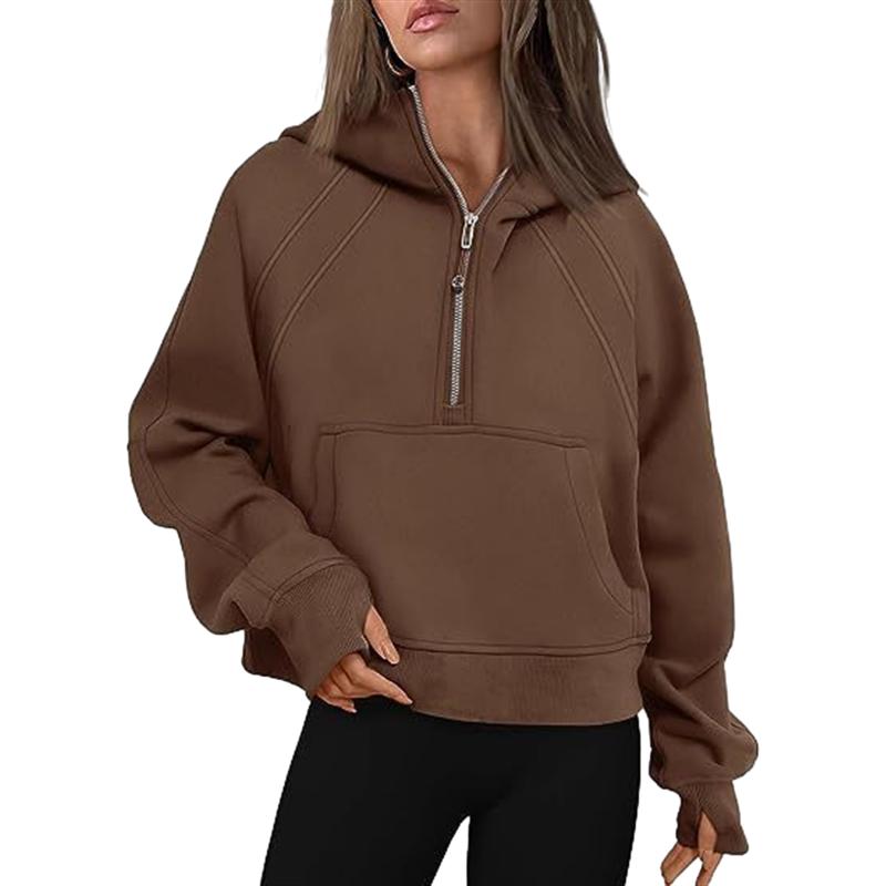 Women's Cropped Half Zipper Hoodies Cute Workout Zip Up Hooded Sweatshirt Fall Tops